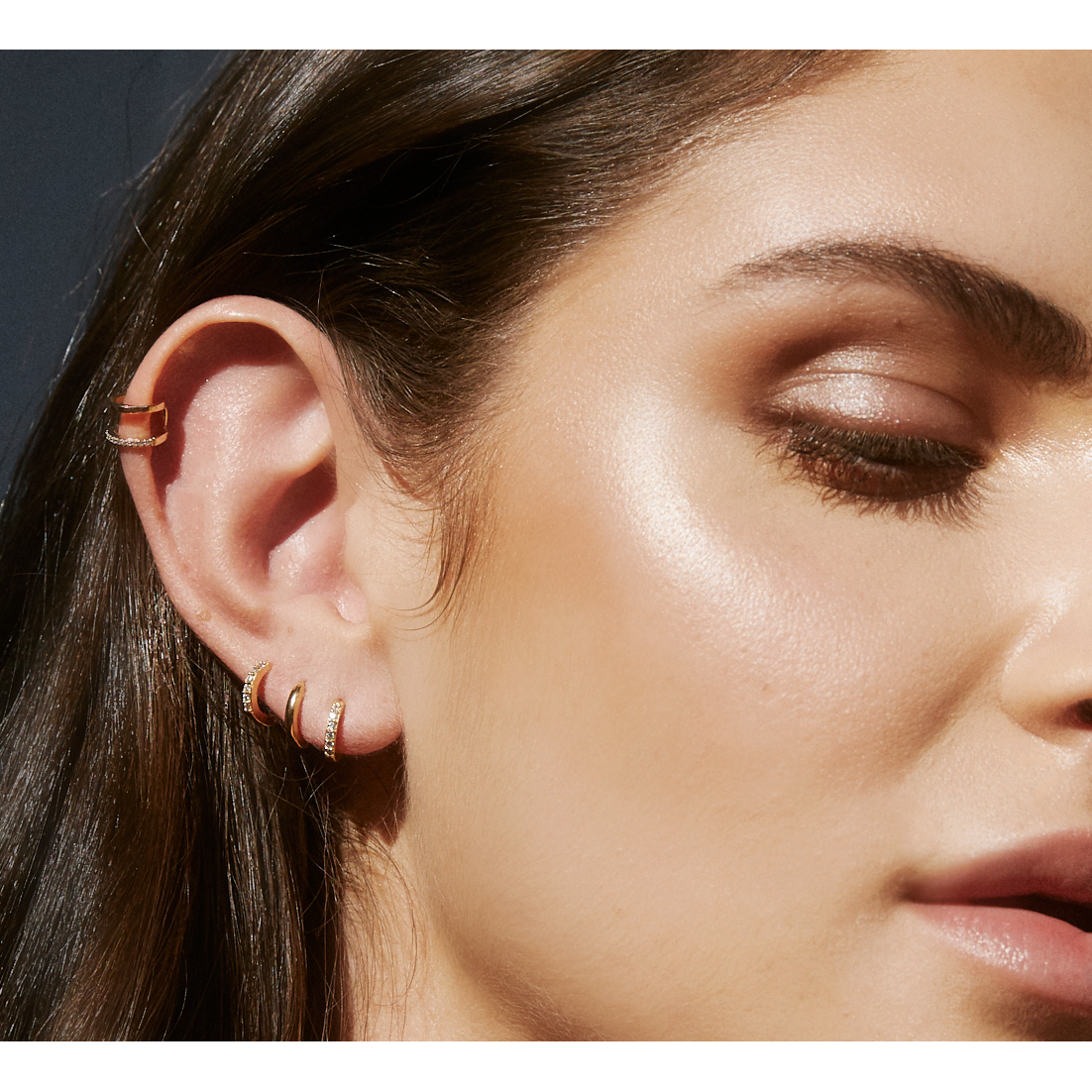 Pure and minimalist, though small, these huggies are impactful in glimmering gold. Comfortable enough to sleep in, with an easy to wear hinge closure. In other words, you’ll put them on and never want to take them off.